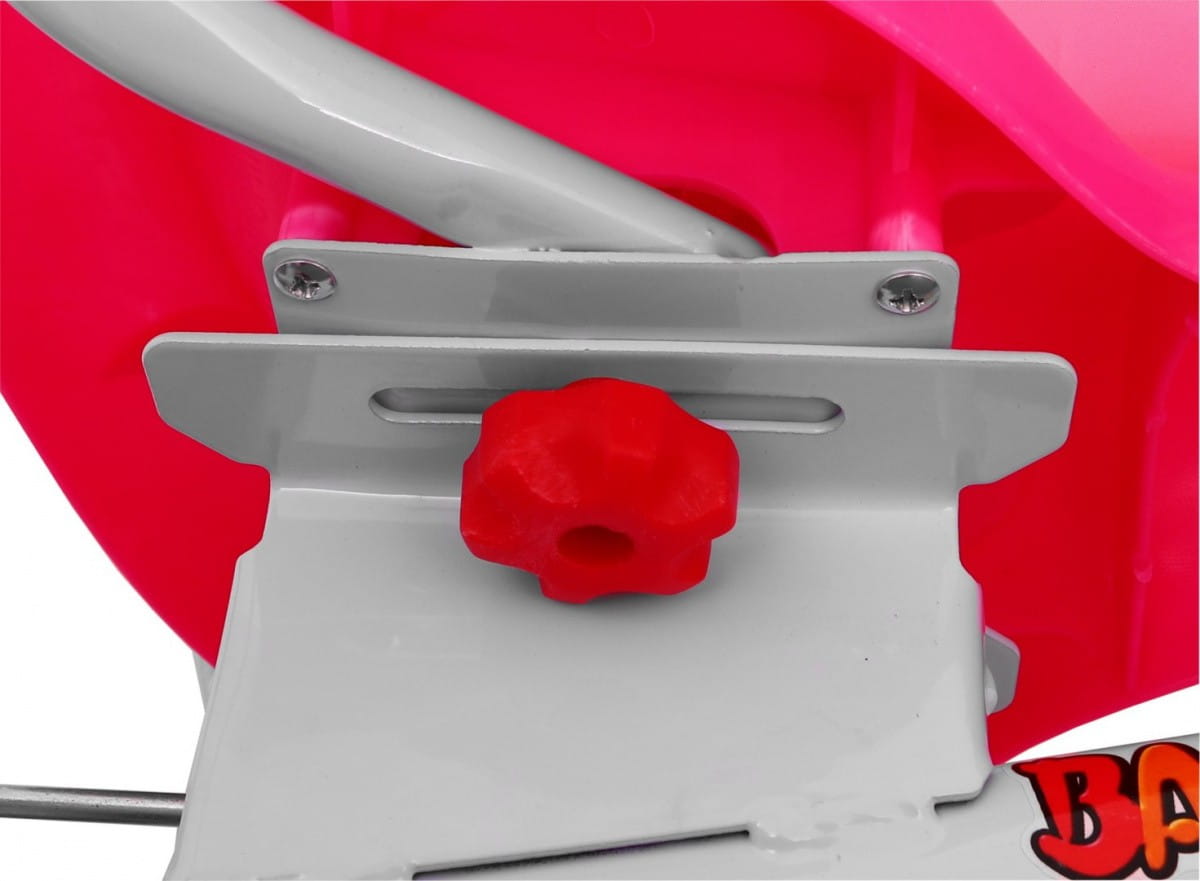 Opis Rowerek Trzykołowy, Słonik z bujawką różowy [B35-2 ROZ] - regulowany, 3 stopniowy drążek połączony z kierownicą, którym można skorygować manewry dziecka,- zaczepiane płozy, które po przełożeniu pod koła służą jako bujawka,- bezpieczne koła z kolorowymi kołpakami,- regulowany baldachim ochronny przed słońcem,- przyciski włączające dźwięki na główce,- kosz (bagażnik) tylni na zabawki,- rozpinana poręcz zabezpieczającą dziecko przed upadkiem,- stabilna i trwała stalowa rama,- przednie koło wyposażone w sprzęgło,- demontowana podstawka pod stopy,- regulowana odległość siedzenia do pedałków,- pokrowiec na siedzisko,- schowek na brzuszku słonika,- szerokie koła wykonane z miękkiej pianki, Wymiary długość ok. 83 cm, szerokość ok.