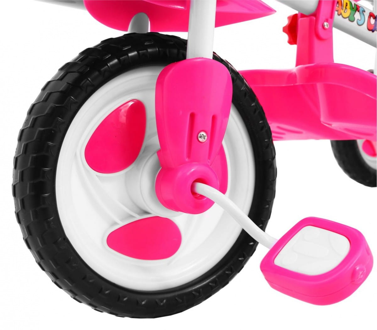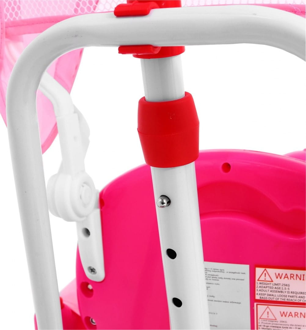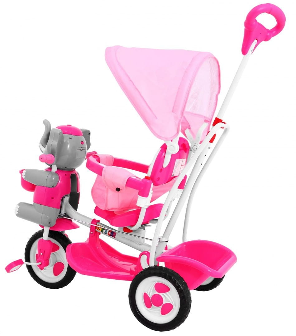 3-kołowy Rowerek dla dzieci Słonik Różowy + Dźwięki + Daszek + Barierka + Podnóżek + Rączka + Płozy + Schowek