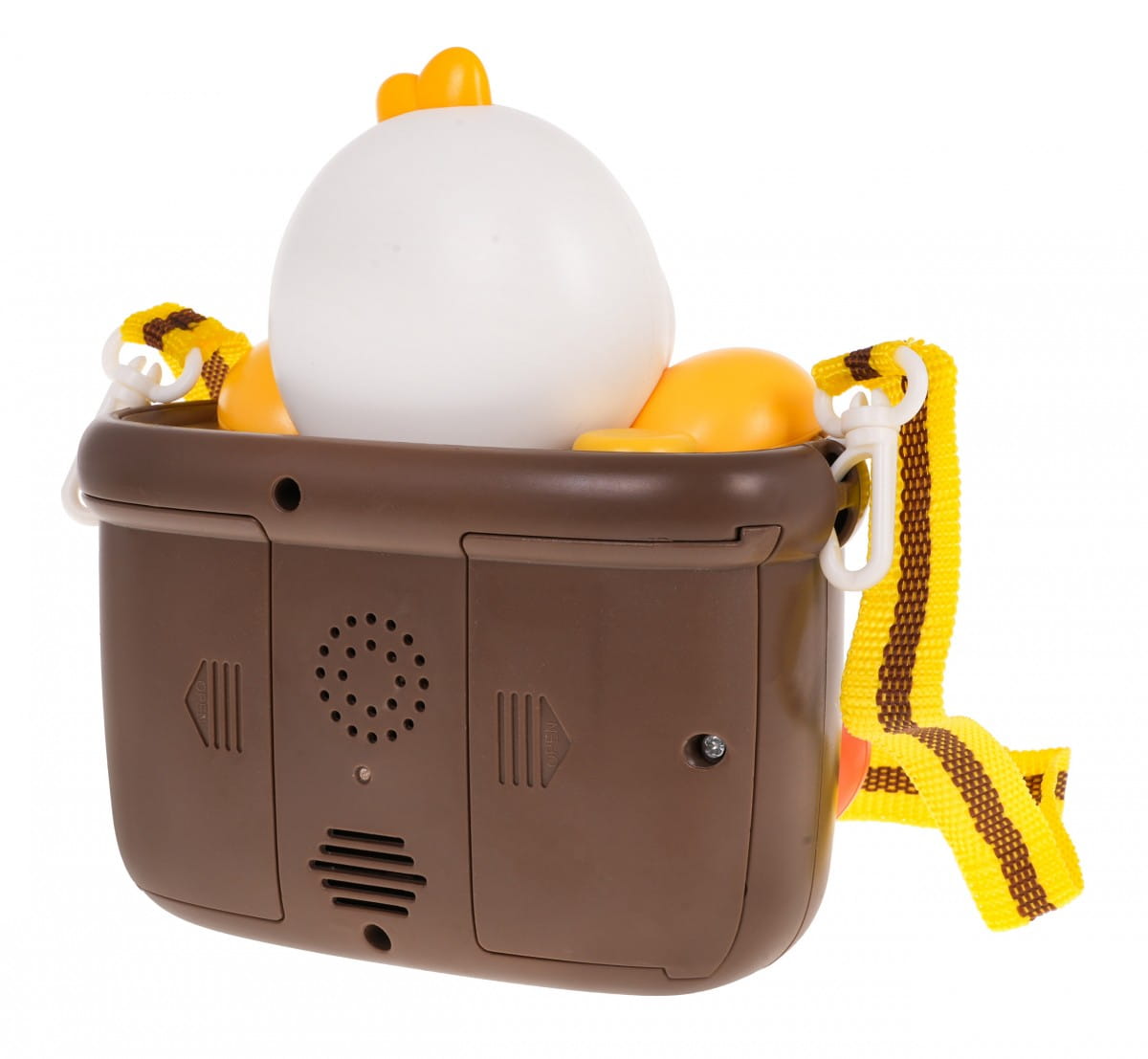 Interaktywna maszynka do robienia baniek mydlanych przypominająca wyglądem aparat fotograficzny w kształcie kaczki to propozycja dla dzieci od 3-go roku życia. Zabawka jest prosta w użyciu, wystarczy uzupełnić ją płynem do baniek mydlanych, dołączonym do zestawu oraz zainstalować baterie. Na brzuszku kaczuszki znajduje się dysza, z której wypuszczane są bańki mydlane przy akompaniamencie wesołych melodyjek. Zabawka imituje także odgłos migawki jak w prawdziwym aparacie. Do maszynki dołączono wygodny pasek umożliwiający założenie zabawki na ramię. Zabawka zasilana jest bateriami typu 3 x AA 1,5V, których brak w zestawie. Aparat, kaczuszka do robienia baniek mydlanych to nie tylko świetna zabawka do ogrodu, ale również idealna propozycja na przyjęcia urodzinowe czy kinderbale. Funkcje: - dźwiękowe – odgłos migawki, wesoła muzyka, śmiech dziecka, - świetlne – dioda nad dyszą do wypuszczania baniek, - wytwarza kolorowe bańki mydlane. | |