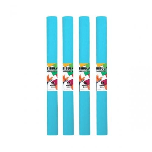 Bibuła marszczona, w kolorze jasnego błękitu - niezbędna każdemu uczniowi na zajęciach plastycznych.