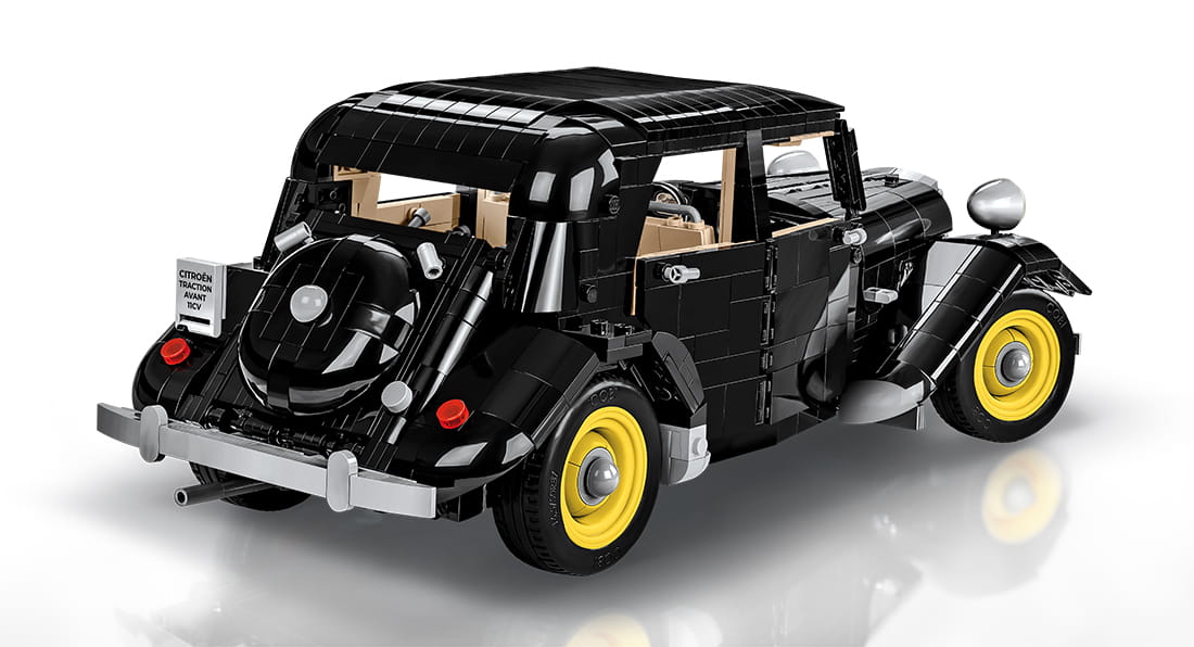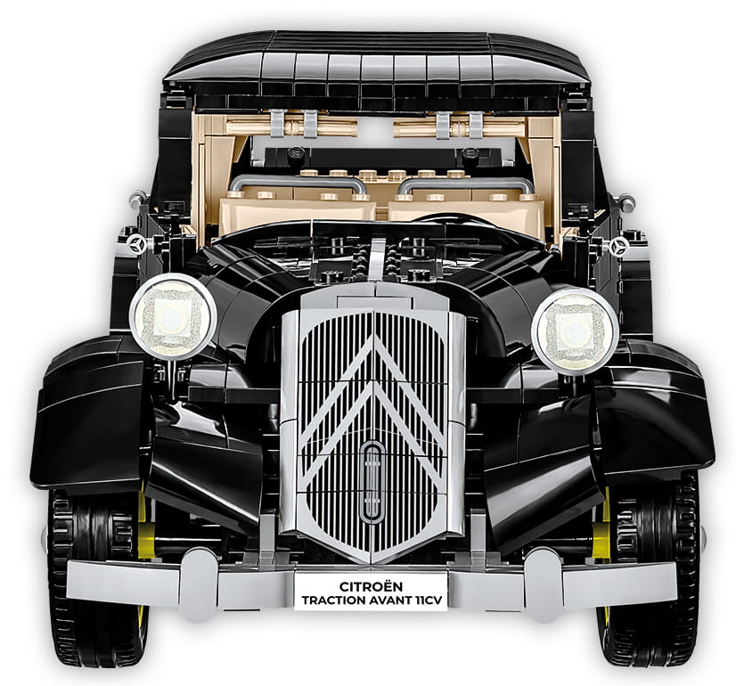 Zestaw z samochodem Citroen Traction 11CV został starannie zaprojektowany klocków konstrukcyjnych COBI przy użyciu aż 1740 wysokiej jakości elementów. Auto uzupełnia wciąż rosnącą kolekcję pojazdów wydanych w dużej skali 1:12! Oznacza to, że samochód jest ogromny i ma aż 37 cm długości!