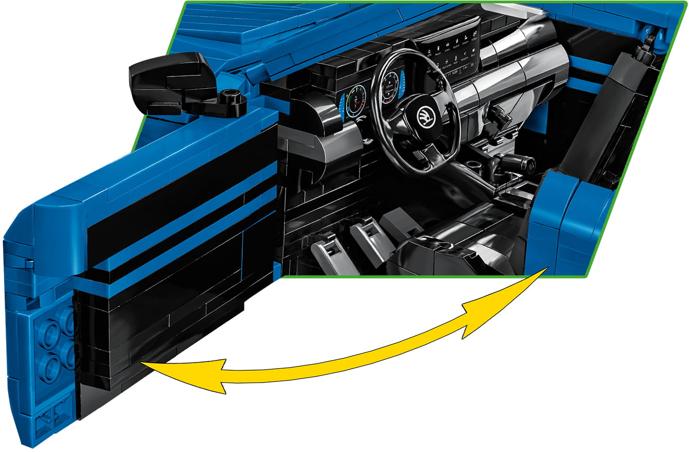 Škoda Octavia to bardzo popularny samochód osobowy klasy kompaktowej produkowany pod czeską marką Škoda od 1996 roku. W 2020 roku zadebiutował model Škoda Octavia RS czwartej generacji, który od tego czasu dynamicznie zdobywa rynek. Po raz pierwszy w ofercie COBI przedstawiamy współczesny samochód osobowy w dużej skali 1:12. Ogromny klockowy model ma aż 37 cm długości i składa się z 2405 wysokiej jakości elementów. Ten zaawansowany technicznie zestaw klocków został wydany na oryginalnej licencji marki Škoda. Realistyczny model wyróżnia się zastosowaniem dużej ilości wysokiej jakości nadruków! Całkowicie zrezygnowaliśmy z naklejek. Specjalnie na potrzeby tak dużych zestawów zaprojektowano nowe elementy, zapewniające dodatkowe funkcjonalności. Ruchoma kierownica, którą możemy skręcać koła, zawiasy do otwieranych drzwi, elementy karoserii i wykończenia. Pod uchylną maską znajduje się odwzorowany z klocków silnik. Liczne detale takie jak światła, zegary, koła, logotypy, wyposażenie wnętrza tworzą spójną całość z doskonale odwzorowaną charakterystyczną bryłą tego pojazdu.