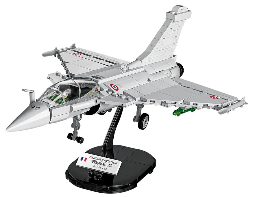Model samolotu Rafale C w skali 1:48 wydany na podstawie oryginalnej licencji Dassault Aviation, stworzony w całości z klocków konstrukcyjnych COBI jest przeznaczony zarówno do zabawy dla najmłodszych fanów lotnictwa, ale ze względu na bardzo szczegółowe odwzorowanie nawet najmniejszych detali będzie to świetna ozdoba każdej kolekcji pasjonata militariów i współczesnego lotnictwa wojskowego. W modelu użyto wyłącznie wysokiej jakości, trwałych nadruków i nie zawiera żadnych naklejek. Posiada wiele ruchomych elementów takich jak koła, które można składać, lotki skrzydeł, owiewka kokpitu pilota czy wreszcie uzbrojenie.
