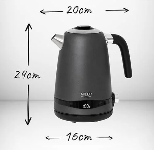 Automatyczne wyłączanie zasilania: TakCzas utrzymywania ciepła: 120 minCzęstotliwość wejściowa AC: 50 / 60 HzEAN: 5905575902948Ergonomiczny uchwyt: TakFiltr Anti-Calc: TakFiltrowanie: TakFunkcja utrzymywania temperatury: TakGwarancja: 24 miesięcy gwarancji fabrycznejKod Producenta: AD 1295gkolor produktu: Satynowy, SzaryLiczba ustawień temperatury: 7Moc: 1850 WMoc maksymalna: 2200 WNapięcie wejściowe AC: 220 - 240 VObrotowa podstawa: TakPodręcznik użytkownika: TakPojemność zbiornika na wodę: 1,7 lRegulowany termostat: TakSchowany element grzewczy: TakSygnał dźwiękowy gotowości: TakTworzywo elementu grzejącego: Stal nierdzewnaTyp ekranu: LCDTyp kontroli: PrzyciskiTyp wyświetlacza: LCDUprzednio zaprogramowana temperatura: TakWbudowany wyłącznik: TakWskaźnik poziomu wody: TakZabezpieczenie przed przegrzaniem: TakZamykane wieczko: Tak.