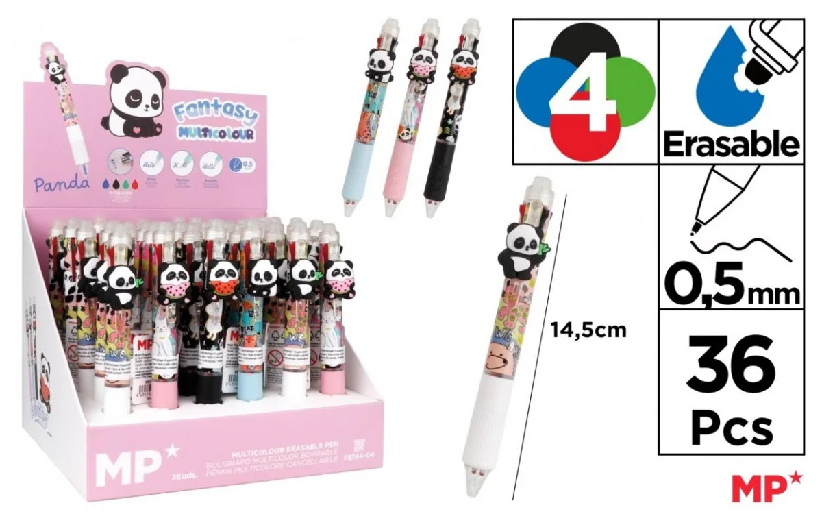 Długopis ścieralny 4-kolorowy Pandy (36szt)EAN: 18435721012374Opakowanie: pudełkoProducent: MP Main Paper.
