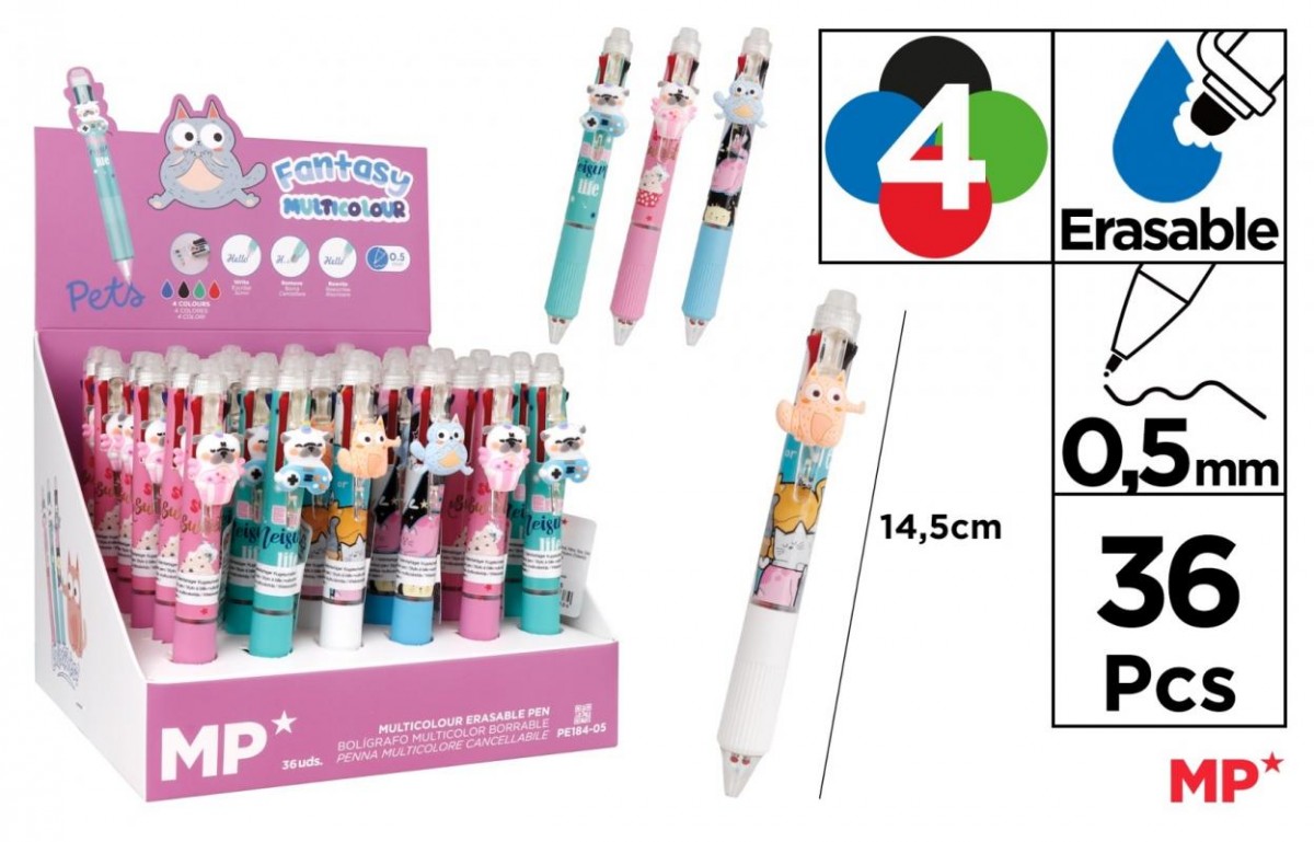 Długopis ścieralny 4-kolorowy Psy i Koty (36szt)EAN: 18435721012381Opakowanie: pudełkoProducent: MP Main Paper.