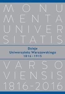 Początki Uniwersytetu sięgają Księstwa Warszawskiego, kiedy utworzono w Warszawie Szkołę Prawa i Nauk Administracyjnych oraz Szkołę Lekarską. Uniwersytet powstał ostatecznie w 1816 r., stając się zwieńczeniem edukacyjnego systemu Królestwa Polskiego i ważnym ośrodkiem kształcenia polskiej inteligencji. Po upadku powstania listopadowego został zlikwidowany w Warszawie istniały wówczas już tylko szkoły półwyższe. W latach 18621869 Szkoła Główna, choć nienazwana uniwersytetem, pełniła w istocie jego rolę. Po stłumieniu powstania styczniowego Szkołę przekształcono w rosyjskojęzyczny Cesarski Uniwersytet Warszawski. Bywał on często uznawany przez Polaków za ciało obce, jednak przygotowujący publikację autorzy uznali, że błędem byłoby pomijanie lub marginalizowanie tej fazy dziejów UW. Cesarski Uniwersytet Warszawski nie był zupełnie oddzielony od życia polskiego społeczeństwa: przez długi czas większość jego studentów stanowili Polacy, Polacy znajdowali się też wśród wykładowców. Historia rosyjskojęzycznego UW to ważny fragment dziejów rosyjsko-polskich stosunków w tamtym okresie. Poza tym Cesarski Uniwersytet Warszawski zasługuje na uwagę jako jedna z uczelni imperium, mająca swoje osiągnięcia. Ewakuacja rosyjskiego uniwersytetu do Rostowa nad Donem, przeprowadzona w 1915 r., gdy Rosjanie opuszczali Kraj Przywiślański, i tamtejsza, blisko dwuletnia działalność pod szyldem "warszawskim", zamykają pierwszy tom "Dziejów".