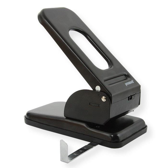 Duży metalowy dziurkacz do 65 kartek. Posiada antypoślizgową podkładkę, wskaźnik środka strony i blokadę przyłożenia dźwigni. Idealny do formatów: A3, B4, A4, B5, A5, B6, A6, B7, 888, folio.
