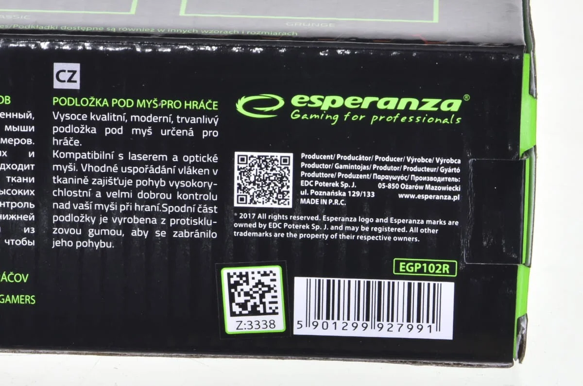 EAN: 5901299927977Grubość: 2 mmGwarancja: 24 miesięcy gwarancjiGłębokość produktu: 200 mmIlość sztuk: 1Kod Producenta: EGP101RKolor powierzchni: Wzórkolor produktu: Pomarańczowy, CzarnyMATERIAŁY: PoliesterPodkładka antypoślizgowa: TakPodkładka dla graczy: TakPodstawka na nadgarstek: NieRodzaj opakowania: PudełkoRozmiar produktu: SSzerokość produktu: 250 mm.
