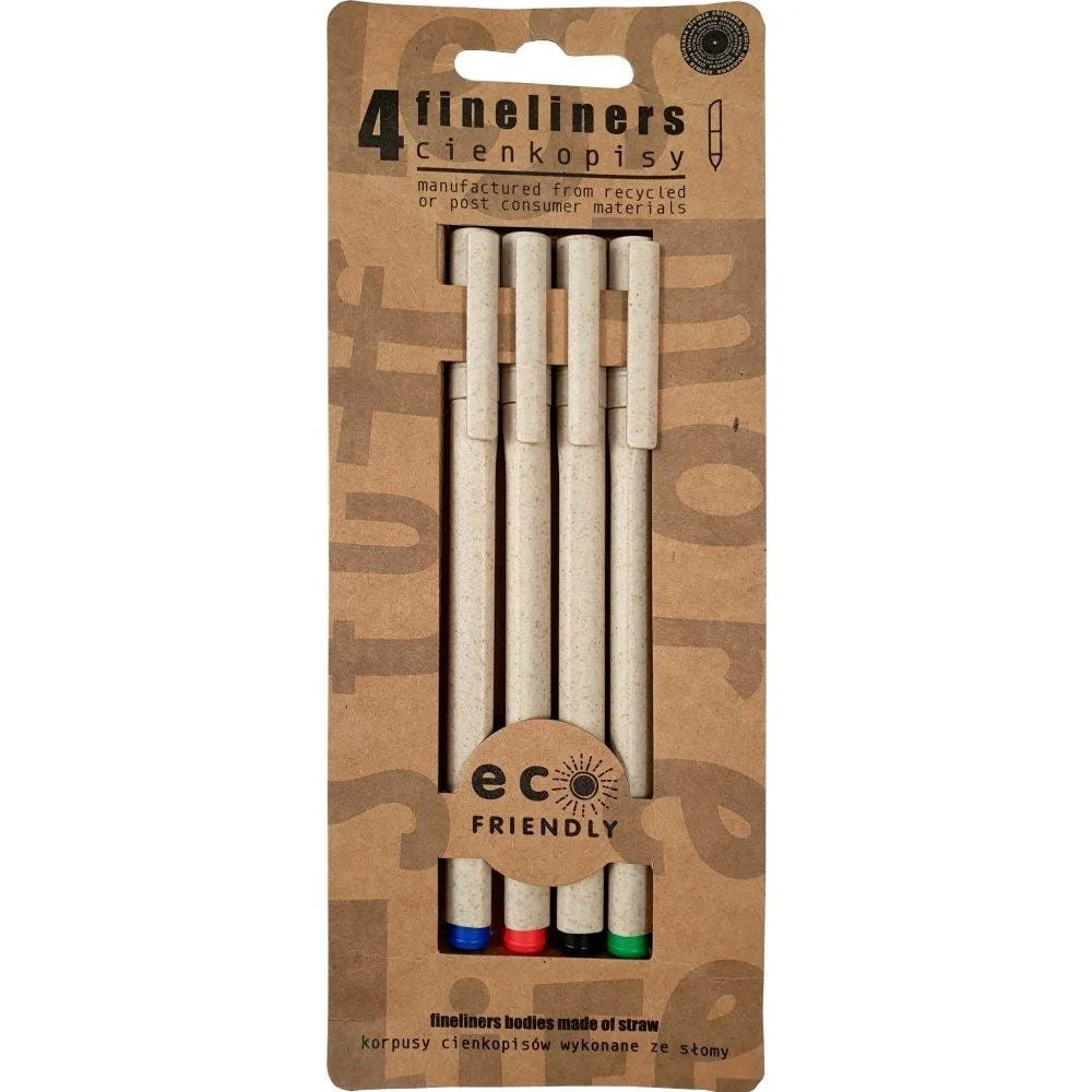 ECO cienkopisy 4 kolory; niebieski, czerwony, zielony, czarny, korpusy wykonane ze słomy EAN: 5903499022124Opakowanie: blisterProducent: Ziemia ObiecanaRok wydania: 2022.