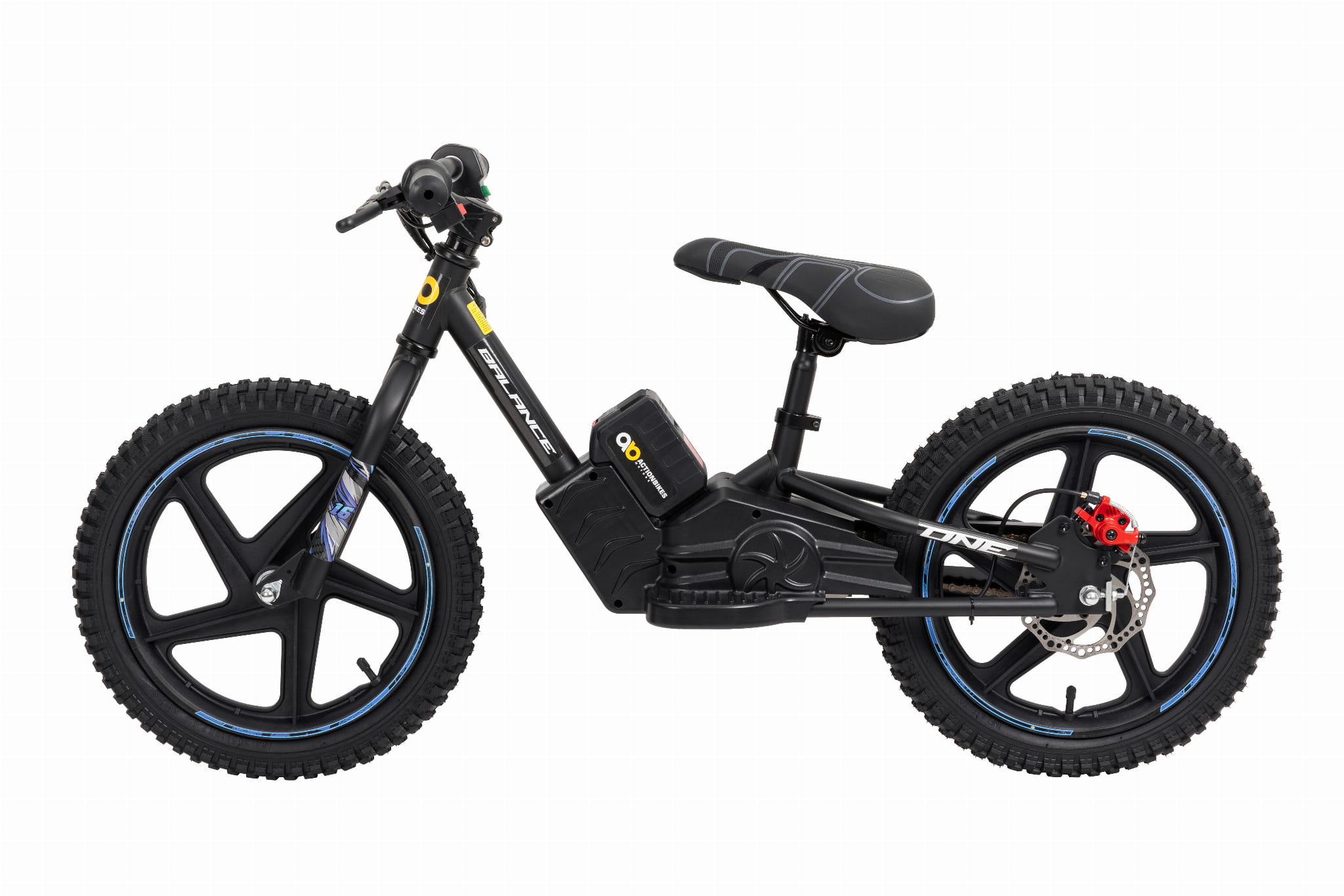 Większość rodziców doskonale o tym wie: gdy tylko maluch przebiegnie przez podwórko w samochodziku lub rowerku biegowym, jedna para butów zdobi dziury po drugiej. Bo jak hamujesz? Stopami oczywiście! Inaczej jest z tym 16-calowym elektrycznym rowerkiem biegowym: dzięki mocnym hamulcom tarczowym wypróbowany i przetestowany hamulec nożny ma swój dzień. Nawet przy lekkim pociągnięciu za dźwignię hamulca rower elektryczny natychmiast się zatrzymuje. Pozytywny efekt uboczny: dzieci są optymalnie przygotowane do nadchodzącej jazdy na rowerze!