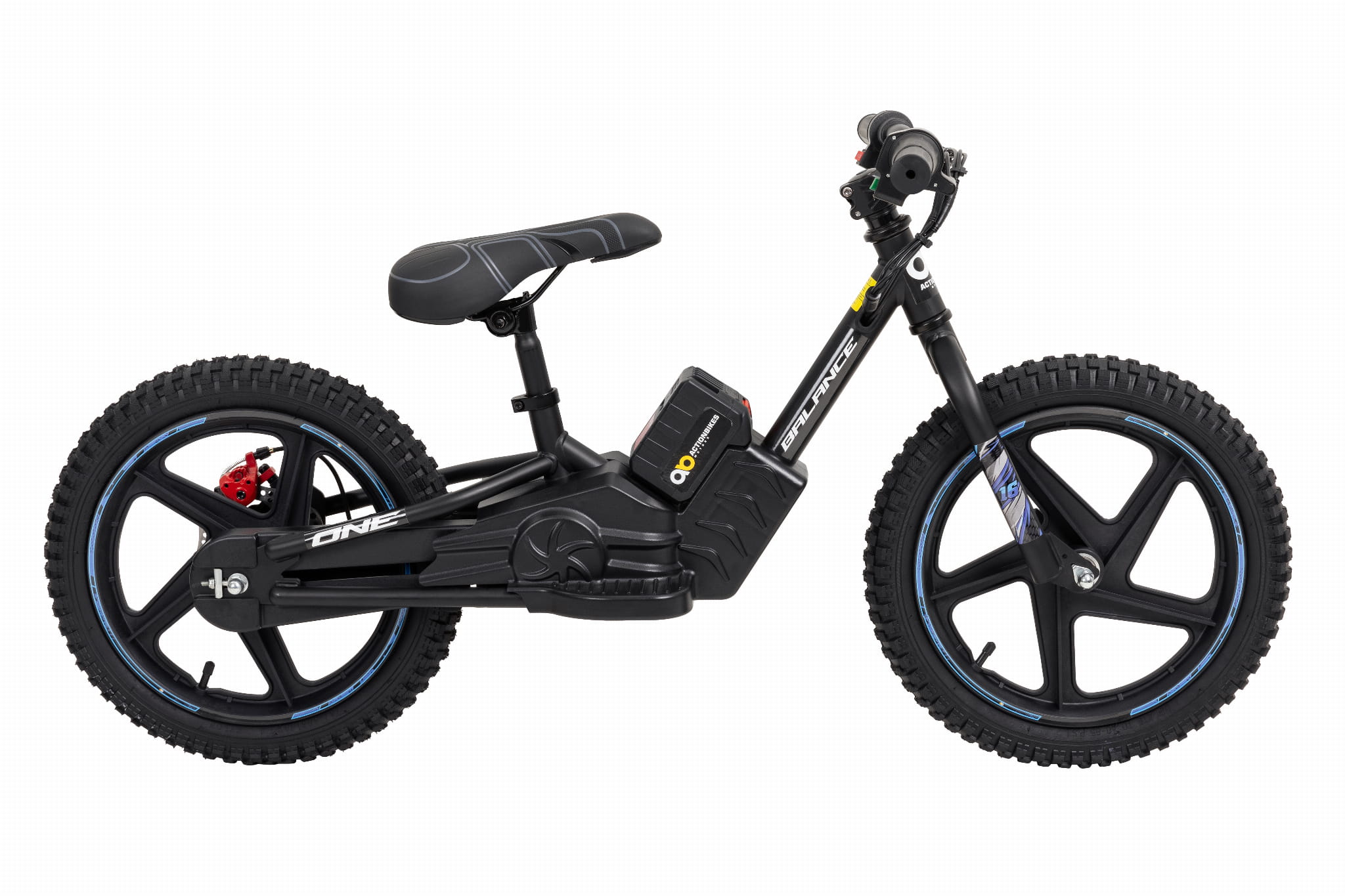 Elektryczny rowerek biegowy, 16 cali, o mocy 250 W, hamulce tarczowe, 3 poziomy prędkości (niebieski)