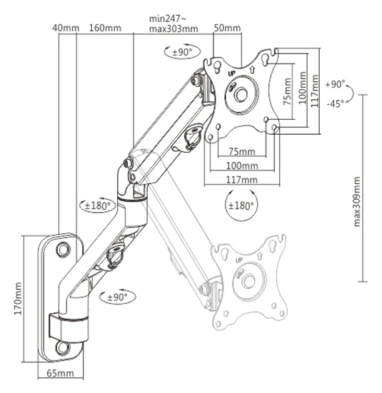 Zawartość opakowania: Ramię, Zestaw akcesoriów instalacyjnych, instrukcja obsługi