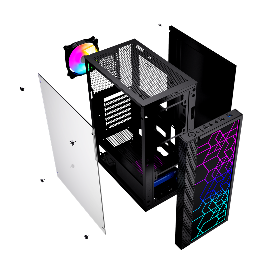 GEMBIRD OBUDOWA FORNAX 2500 MIDI-TOWER (1X USB 3.0, 2X USB 2.0, HD AUDIO, SZKLANY PANEL BOCZNY) CZARNA