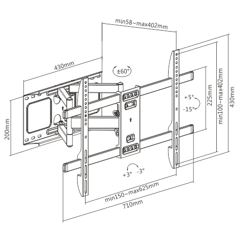 Certyfikat środowiskowy (zrównoważonego rozwoju): RoHSDystans do ściany (max.): 4,1 cmEAN: 8716309126229Gwarancja: 24 miesięcy gwarancjiGłębokość opakowania: 298 mmKąt obrotu: 120°Kod Producenta: WM-80ST-02kolor produktu: CzarnyLiczba obsługiwanych wyświetlaczy: 1Maksymalna wielkość ekranu: 2,03 m (80")Maksymalny uchwyt VESA: 600 x 400 mmMaksymalny udźwig: 60 kgMateriał obudowy: StalMinimalna wielkość ekranu: 94 cm (37")Przewodnik użytkownika: TakRodzaj opakowania: PudełkoSzerokość opakowania: 436 mmTyp mocowania: ŚcianaWaga produktu: 5,77 kgWbudowana poziomica: TakWysokość opakowania: 65 mmZakres kąta nachylenia: 5 - 15°Zestaw do montażu: Tak.