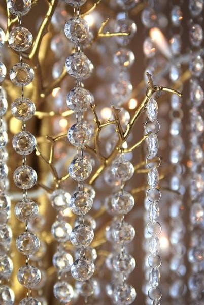 Girlanda kryształowa bezbarwna, długość 1 metr. Średnica kryształowego kółka 18 milimetrów.