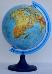 Globus 250 mm mapa fizyczna 3D zaprojektowana tak, aby mieć lepsze wyobrażenie głębi i ukształtowania terenu kuli ziemskiej, stopka plastikowa, cięciwa plastikowa. Podświetlany