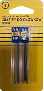 2 tubki po 12 grafitów / 60 mm,twardość grafitu: HB,grafit: 0,5mm.EAN: 5903364245580Opakowanie: plastikowaProducent: Grand.