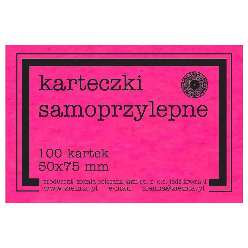 Karteczki samoprzylepne Fluo 50x75mm 100KEAN: 5903499860016Opakowanie: foliaProducent: Ziemia ObiecanaRok wydania: 2022Wymiary: 79x52 mm.