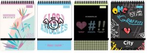 Fascynujący design - Okładka każdego notatnika ozdobiona jest modną grafiką co nadaje mu unikalnego charakteru. Miękka matowa oprawa . Czarna spirala dodaje notatnikom eleganckiego wykończenia.