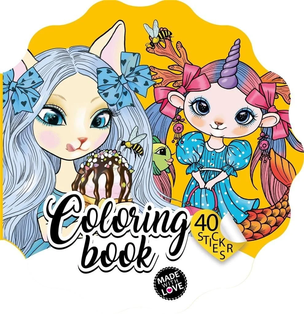 Kolorowanka dla dzieci w kształcie kwiatka, z magicznymi zwierzątkami. W zestawie 40 naklejek.