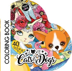 Kolorowanka dla dzieci w kształcie serca, z magicznymi zwierzątkami. W zestawie 40 naklejek.
