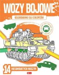 KOLOROWY RAJD WOZAMI BOJOWYMI Oto nie lada gratka dla chłopców - czternaście kolorowanek z wozami bojowymi. Wykorzystują je armie wielu państw na różnych kontynentach. Pływające transportery opancerzone, wozy piechoty, rozpoznawcze, taktyczne i zabezpieczenia technicznego, czołgi, terenowe i wielozadaniowe pojazdy opancerzone. Nie straszne im żadne terenowe przeszkody, do każdego celu dotrą na czas. Polskie wozy bojowe reprezentują wielozadaniowy WZT-3, samobieżna armatohaubica Krab, czołg PT-91 Twardy oraz zwinny i szybki transporter opancerzony Rosomak. Do wszystkich pojazdów dodano naklejki: sylwetki, flagi, godła lub symbole różnych rodzajów sił zbrojnych. KREDKI W DŁOŃ I JEDZIEMY!