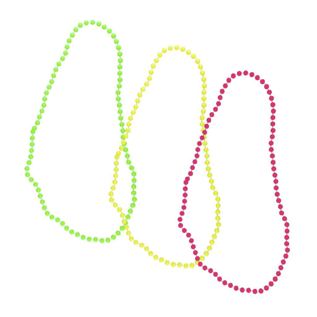 Komplet trzech naszyjników w kolorach neonowych. Produkt wykonany z tworzywa sztucznego. Doskonały dodatek do stylizacji nawiązujących do lat 80', na festiwale i koncerty. W zestawie znajduje mix kolorystyczny. Rozmiar uniwersalny. Długość naszyjnika to 80 cm.