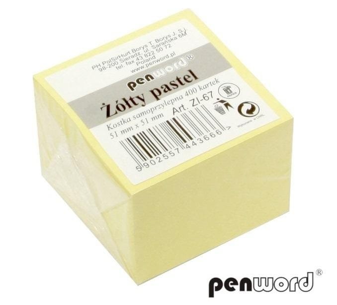 Kostka samoprzylepna pastel żółty 51x51mm 400KEAN: 5902557443666Opakowanie: foliaProducent: Penword.