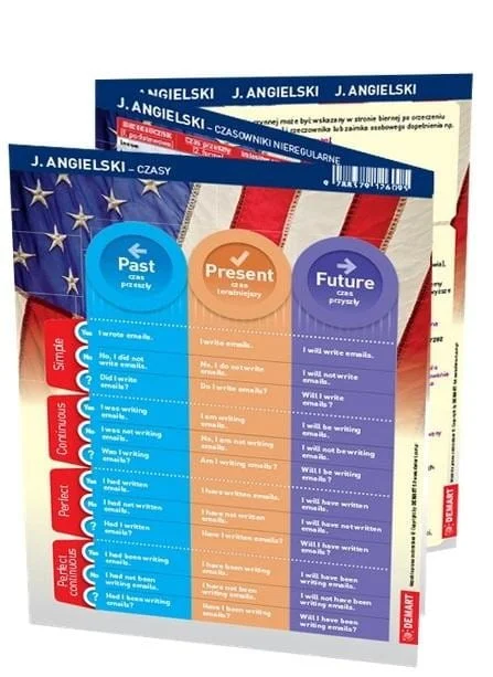 Zestaw ściągawek do języka angielskiego w formie składanej harmonijki.