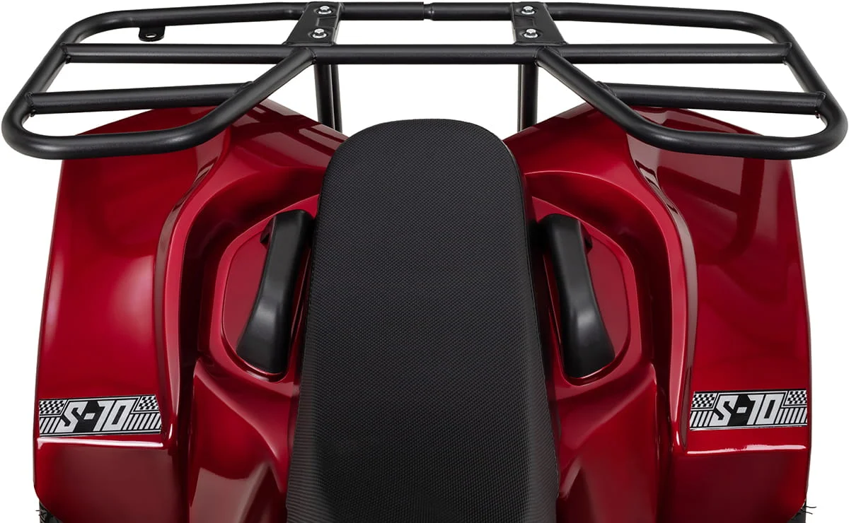 Z tym quadem dla dzieci możesz zabrać do domu prawdziwy rower akcji! Szczególną atrakcją jest szeroki bagażnik, który nadaje modelowi S-10 charakterystyczny, sportowy wygląd zewnętrzny. Wyraźnie widoczne amortyzatory wspierają ten wygląd. Gwarantuje to frajdę z jazdy dla młodych zawodników!ATV S-10 to profesjonalista na nierównym terenie