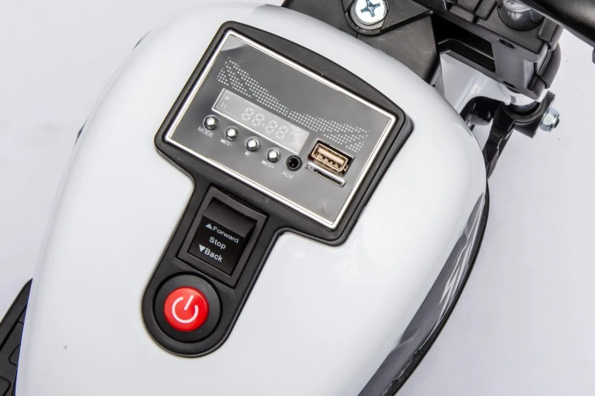 Specyfikacja Motorek Chopper FASTER Silnik 20W Akumulator 6V/4,5Ah, Koła Plastikowe, 22 x 6 cm, Biegi Przód / Tył Światła LED, Przód, Wyposażenie Panel Audio Radio FM, MP3, SD, Bluetooth, USB, AUX, Wgrane melodyjki. Start Włącznik z Odgłosami Silnika, Siedzenie 22x16 cm, Wymiary Rozmiar Pojazdu Długość 78 cm, Szerokość 30 cm, Wysokość 55 cm, Waga Pojazdu 5 Kg, Rozmiar Kartonu 62x28x36 cm, Waga Kartonu 6 Kg, Maksymalne Obciążenie 25 Kg, Prześwit 6 cm, Wyposażenie Dodatkowe Instrukcja + zestaw montażowy, Ładowarka, EAN: 5903864941067.