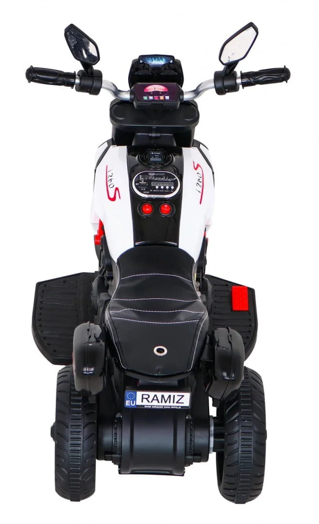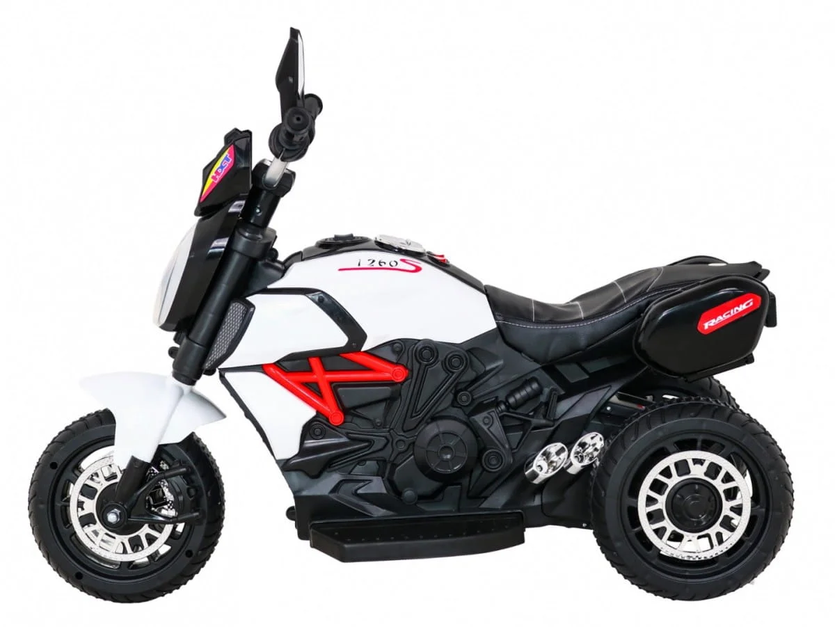 Motorek Fast Tourist na akumulator dla dzieci Biały + Audio + Światła + Ekoskóra