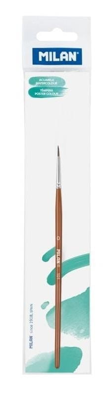 Szkolny okrągły pędzel serii 101 nr 0 z krótkim drewnianym trzonkiem. Skład: 70% naturalnego włosia koziego + 30% syntetyczne. Brązowe lakierowane wykończenie i aluminiowa skuwka bez spawania, odporna na rdzewienie. Bardzo miękkie włosie idealne do akwareli, technik wodnych i farb plakatowych. Lepsze zatrzymanie wody i farby. Gładsza linia. Lepsza odporność i elastyczność, co ułatwia odzyskanie kształtu po jego użyciu. Średnica włosia: 2 mm. Długość włosia: 7,5 mm. Długość pędzla: 164 mm.