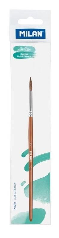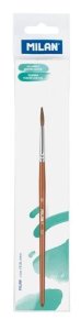 Szkolny okrągły pędzel serii 101 nr 2 z krótkim drewnianym trzonkiem. Skład: 70% naturalnego włosia koziego + 30% syntetyczne.