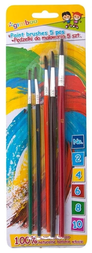pędzelki do malowania metalowa skuwka oraz drewniany uchwyt pędzle w rozmiarze włosia: 2, 4, 6, 8, 10 100% naturalnego końskiego włosia 5 szt. w j.