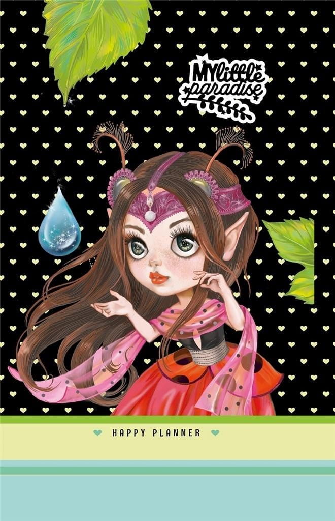 Ozdobny planer "My little paradise", w twardej oprawie z brokatem dedykowany dziewczynkom. Zawiera 96 kartek w kratkę, z różnokolorowymi marginesami oraz ilustracjami.