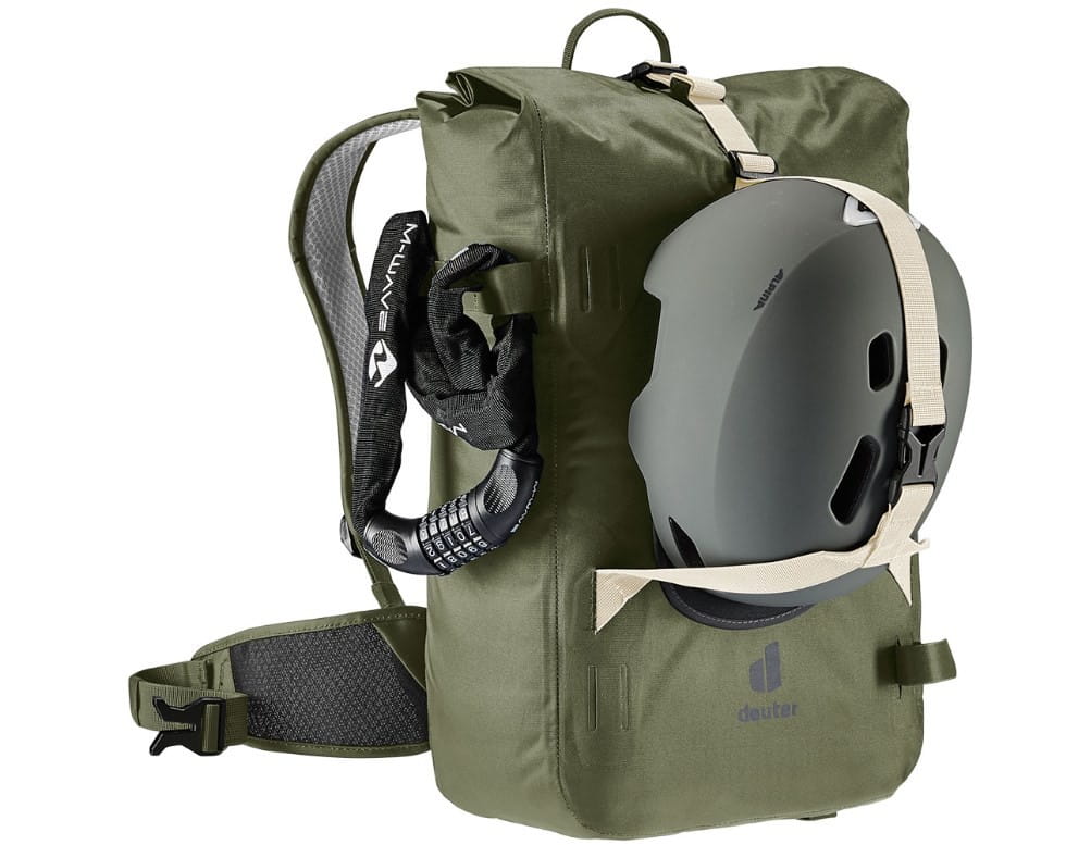 Cechy szczególne: pętle mocujące do uchwytu na kask, zwijane zamknięcie dla zwiększania objętości
