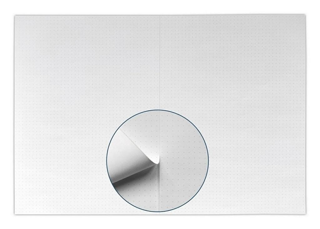 Klasyczna podkładka na biurko w formacie A3 firmy Narcissus. Biuwar posiada perforację na środku, pozwala to na oderwanie połowy kartki po jej zapisaniu. Takie rozwiązanie sprzyja ekonomicznemu wykorzystaniu całego obszaru do zapisków. Papier ma podwyższoną gramaturę 90 gsm. 30 kartek jest zadrukowanych w kropki o rozstawie 0,5 cm - sprzyja to kreatywnemu planowaniu. Z drugiej strony kartki czyste.Całość jest klejona po długiej krawędzi, plecki wzmocnione dodatkową, usztywniającą tekturą.