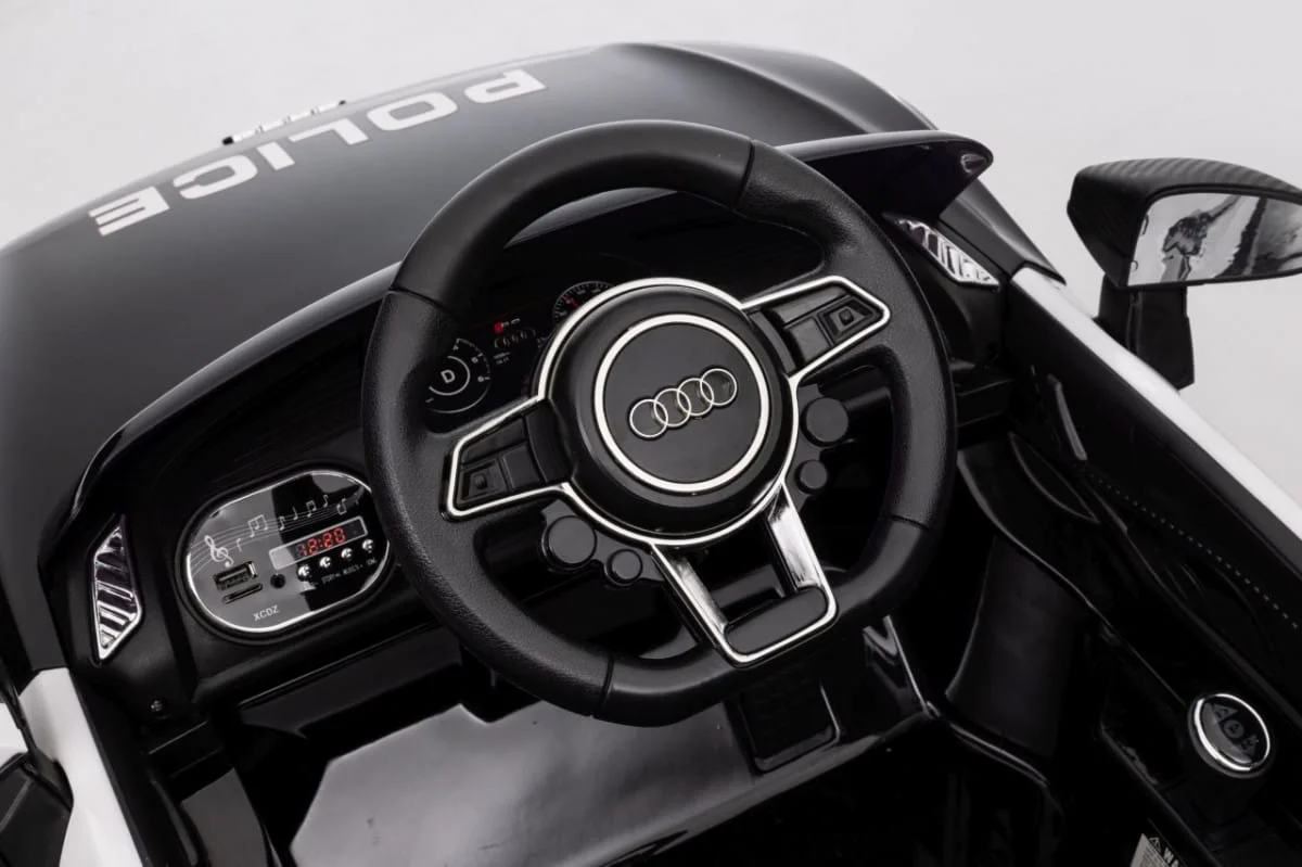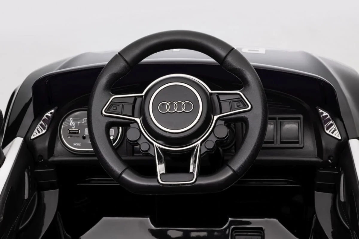 Specyfikacja Audi R8 Silnik 2 x 35W Akumulator 2 x 6V/4,5Ah Pilot 2.4G, 3 Szybkości, Przycisk bezpieczeństwa Stop, Koła Piankowe koła EVA, 19 x 7cm Amortyzatory Przód/Tył Biegi Wolny Start, Przód/Tył Światła Światła LED, Przód, tył, Wyposażenie Panel Audio USB, SD MP3, Wejście AUX, Przyciski melodyjek i klaksonu w kierownicy, Wgrane melodyjki, Wskaźnik Naładowania Tak Siedzenie Czarna ekoskóra, Pasy bezpieczeństwa, 34 x 16 x 22 cm Otwierane Drzwi Tak Wymiary Rozmiar Pojazdu Długość 98 cm, Szerokość 59 cm, Wysokość 43 cm, Waga Pojazdu 10,5 Kg Rozmiar Kartonu 100 x 53 x 31 cm Waga Kartonu 13,5 Kg Maksymalne Obciążenie 30 Kg Prześwit 9,5 cm Wyposażenie Dodatkowe Instrukcja + Zestaw Montażowy Ładowarka Kabel MiniJack EAN: 5903864942231.
