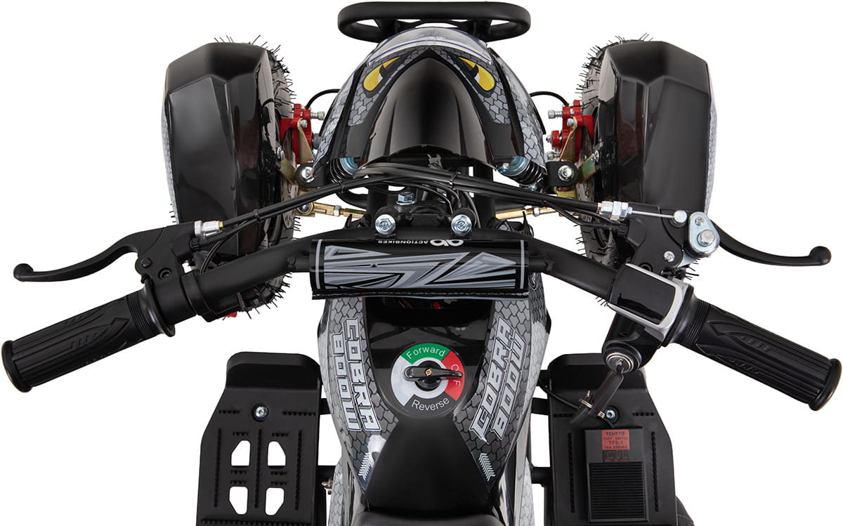 Dzięki elektrycznemu quadowi dla dzieci Cobra dzieci mogą cieszyć się wyjątkowo łatwą obsługą. Ponieważ jest wyposażony w praktyczną automatyczną skrzynię biegów . Oznacza to, że nawet najmniejszy zawodnik może mieć udaną jazdę. Biegi do przodu, neutralny i wsteczny