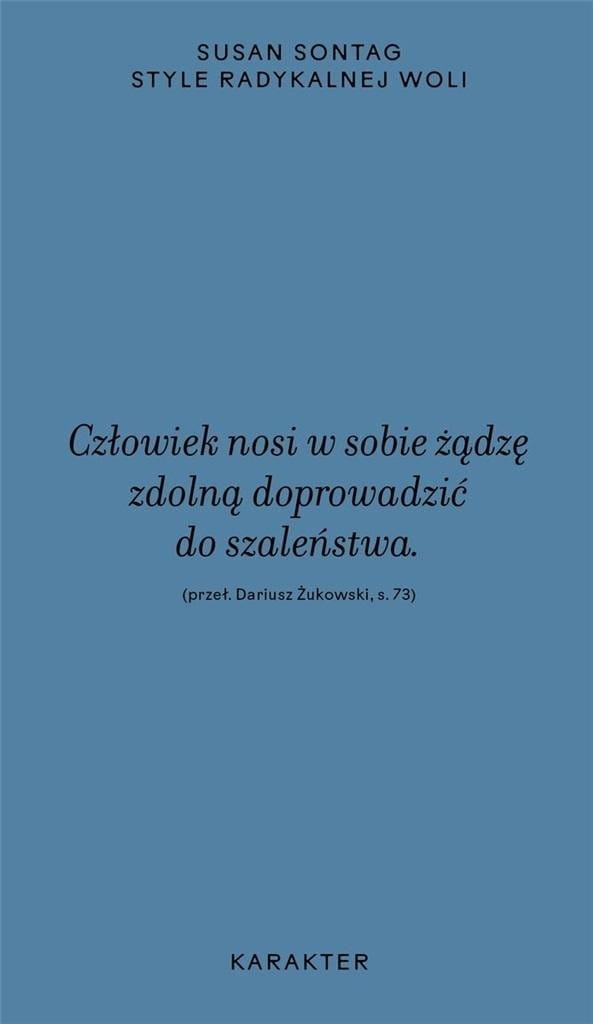 Tom esejów amerykańskiej pisarki obejmuje teksty o myśleniu pornograficznym, ciszy, Cioranie i Bergmanie. Szczególnie ciekawie rezonuje dziś artykuł będący odpowiedzią na ankietę Co się dzieje w Ameryce przeprowadzoną w 1966 roku przez Partisan Review. Sontag pisała tam między innymi: Nie sądzę, by białej Ameryce zależało na równouprawnieniu Czarnych. Jest to ważne tylko dla wąskiego grona białych Amerykanów, w większości wykształconych i majętnych, z których w dodatku tylko mała część ma jakieś bliższe osobiste kontakty z Czarnymi. To kraj gorliwie rasistowski. I taki pozostanie w dającej się przewidzieć przyszłości.