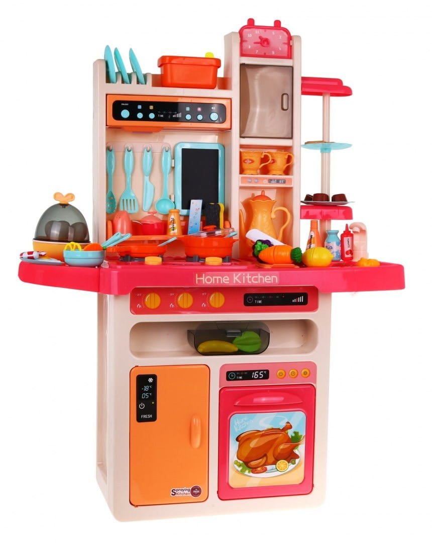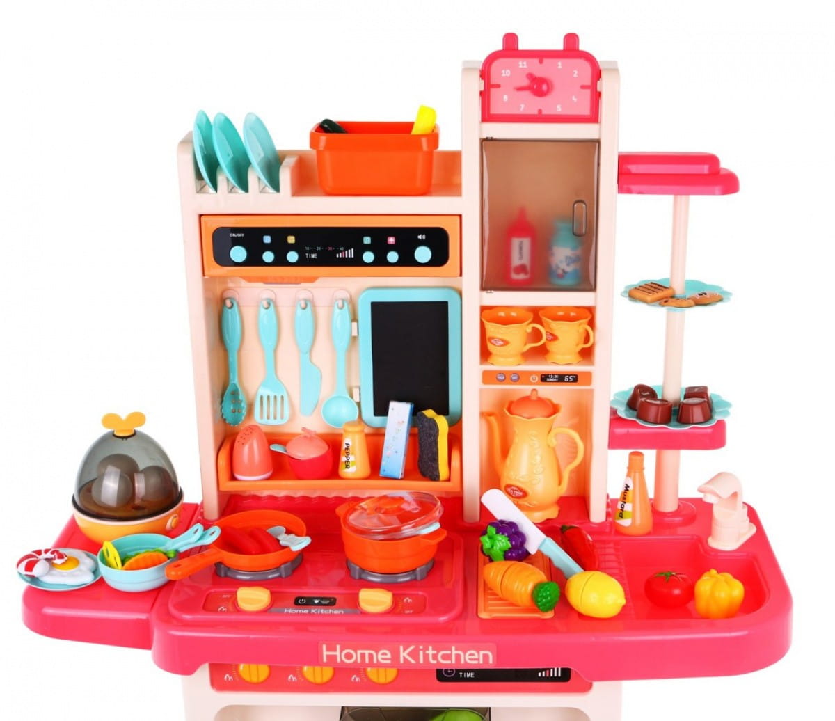 Stylowa różowa Kuchnia dla dzieci 3+ Kran z wodą + Interaktywny palnik z parą + Panel audio 65 el.