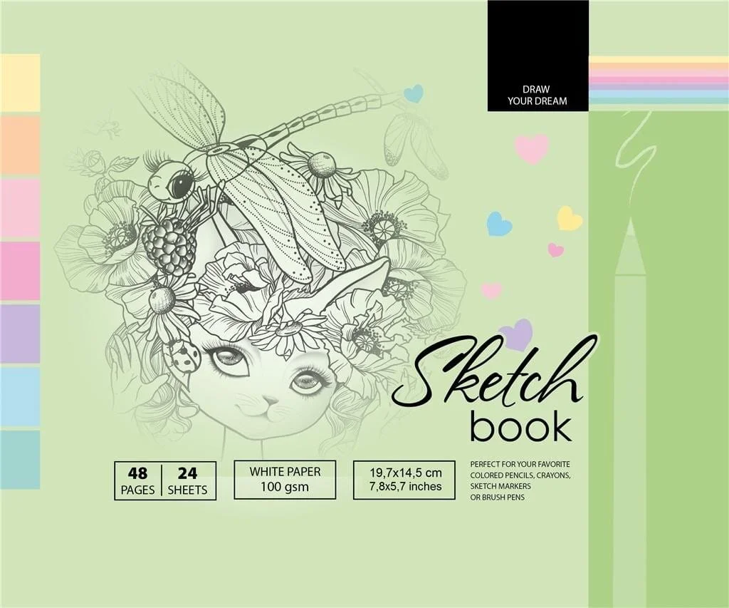Szkicownik 197x145 mm, 48 stron, gramatura papieru 100g/m2. Ołówki, kredki, markery, mazaki, pędzle - tych rzeczy możesz użyć w tym szkicowniku! Namaluj swoje marzenia!EAN: 4823089214979Producent: FreshWymiary: 200x150x10 mm.
