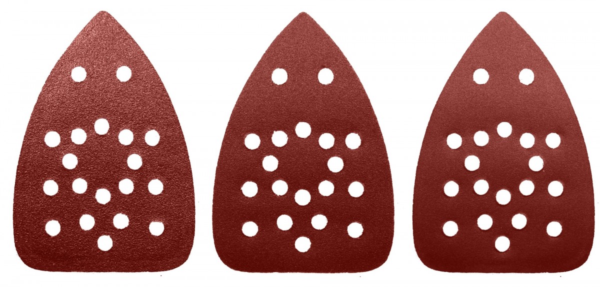 Zawartość zestawu: 8x papier ścierny 80g, 8x papier ścierny 120g, 4x papier ścierny 180g, 20x papier ścierny na palec 180g do detali i małych obszarów oraz torba