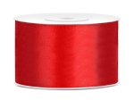 Tasiemka satynowa w kolorze czerwonym, szerokość 38 milimetrów, długość 25 metrów.
