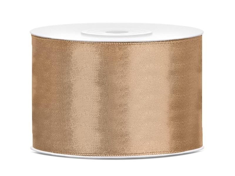 Tasiemka satynowa w kolorze jasnozłotym, szerokość 50 milimetrów, długość 25 metrów.