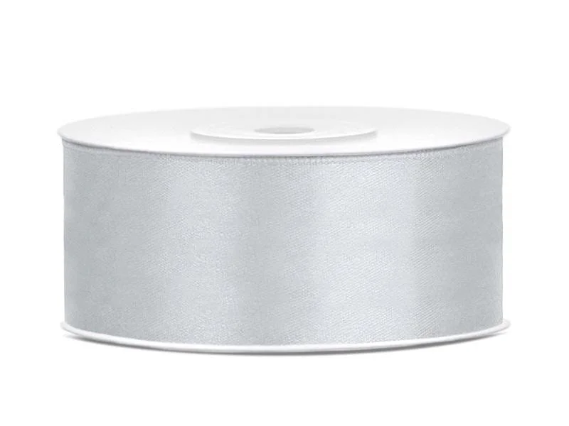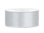 Tasiemka satynowa w kolorze srebrnym, szerokość 25 milimetrów, długość 25 metrów.(1 szt.