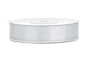 Tasiemka satynowa srebrny 12mm/25m