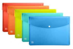 Mix w opakowaniu zbiorczym, 5 sztuk.Teczka kopertowa na zatrzask wykonana z mocnego polipropylenu o grubości 300 mic.
